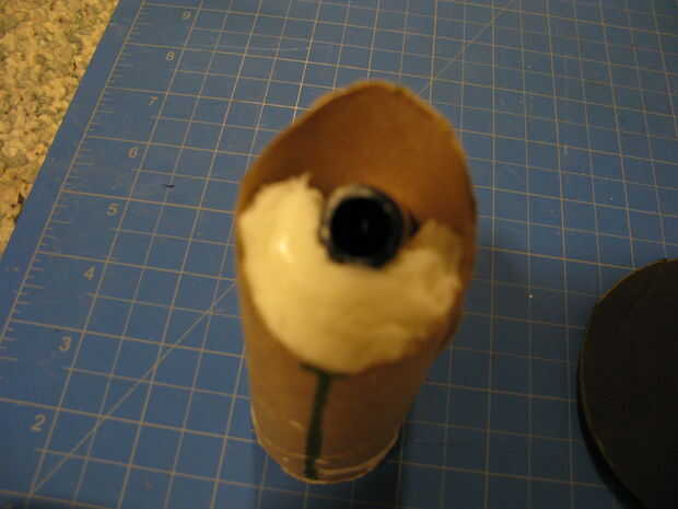 - Mezcle su Oogoo, epoxy o bondo. Con el extremo superior plana sobre una superficie firme, llena el tubo. Llenar pero no sobre relleno y los extremos protruir. Si está utilizando un lápiz para hacer el "túnel", después de la Oogoo establece un poco, dele vuelta alrededor para que no se pegue.