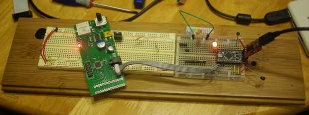 - Conecte al menos el latido del corazón led en el pin 9. No te olvides de usar un resistor. una resistencia de 220 o 330 ohm funciona con LEDs más. Si deja de parpadear cuando no están cargando, restablecer la tabla con el Programa ISP.