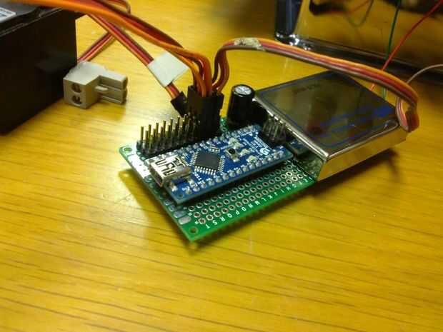 Empecé a soldar el Arduino en un pedazo de perfboard y poniendo en 3 filas de pines de cabecera de 2,54 mm junto a los pines digitales 2,3,4,5,6 y 7.