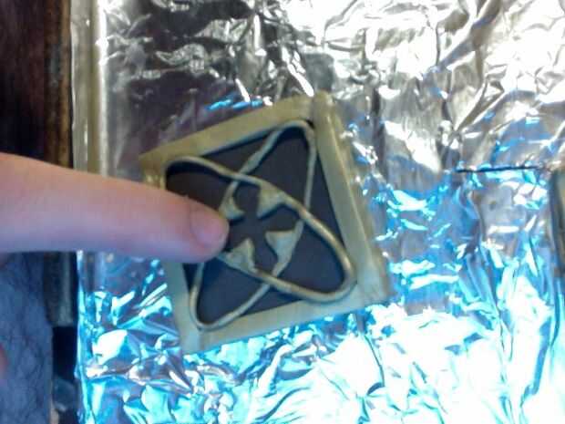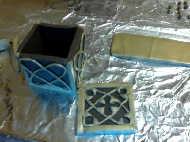 Colocar los 4 triángulo en el centro. Colocar en la parte media de ese lado, luego empuje hacia abajo. Utilice su cuchillo para suavizar los bordes para combinar con el lazo que hiciste.