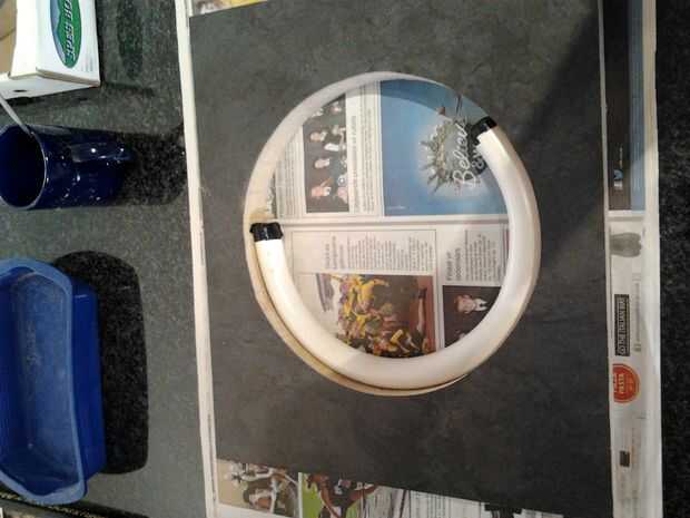 Para hacer que un toro de diámetro D, el tubo al final de todo el proceso será D veces pi. Por ejemplo, quiero un toro con diámetro promedio de 230mm, por lo que la longitud del tubo (circunferencia del toroide) será 230 veces 3.1416 = 723 mm. Por lo que necesita una pieza de madera (el "molde") por lo menos tan grueso como el diámetro del tubo (por ejemplo, d = 25mm) y lo suficientemente grande como para hacer un agujero en ella, donde el agujero es D + d.