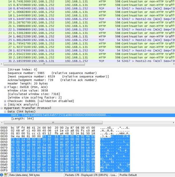 Nos miró un poco más de cerca a cada paquete y notó que los datos inició con la misma 0x55aa15a8... bytes, además de un valor que parecía estar contando hacia arriba cada paquete y una larga secuencia de ceros, para un total de 32 bytes. Presumiblemente, audacia fue tomando estas cabeceras de paquetes como datos de audio y tratando de decodificar, que es lo que hace los sonidos de chasquidos desagradables.
