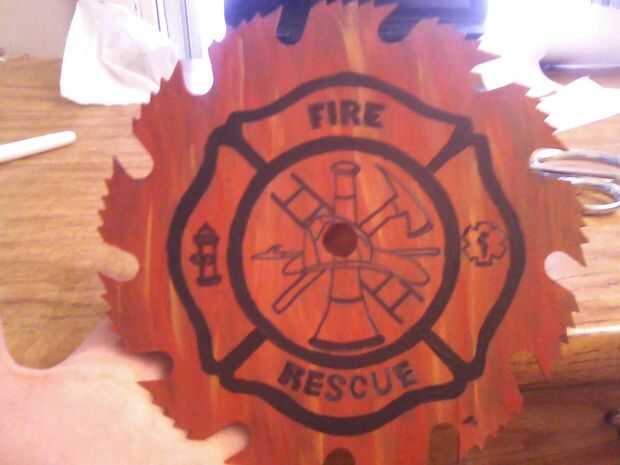 Deje que se seque y trazó los bordes de una cruz de Malta y luego dibujó en el resto. Me pintó la Cruz de Malta negro y dejar secar. Le di a mi vecino que un bombero diez años y que me hizo llegar a ser bombero.