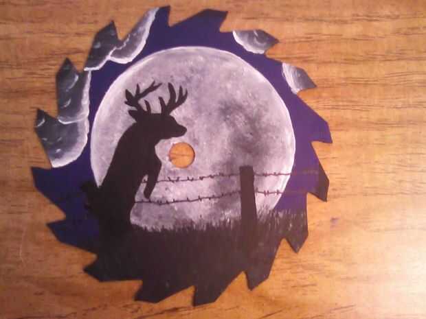 Me dibujó y pintó la silueta del ciervo, hierba y cerca de alambre de púas. He añadido las nubes con movimientos circulares y mezcla delgada entonces contornos blancos por las nubes mirando la luna.