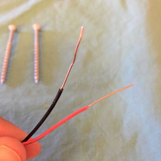 - Tira de la capa de ambos extremos del uso de los peladores. Un lado debe ser suficientemente largo para envolver varias veces alrededor de su Tornillo/clavo y el otro lo suficiente como para caber en un perno en su Arduino o protoboard.