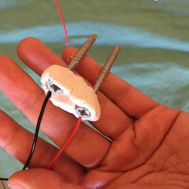 - Los dos clavos no pueden tocar y es necesario mantener una distancia estable de uno a. Moldeó algunas Sugru tuve en mano alrededor de las dos uñas para mantenerlos separados a la misma distancia. También he visto esto con un cuadrado de espuma de poliestireno. ¡ Sea creativo!