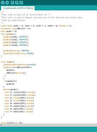Si utilizas los esquemas en el paso anterior exactamente, sólo debe ser capaz de subir el código adjunto y tienen una funcionamiento luz de bicicleta, pero para aquellos de ustedes que quieren saber qué sucede en el código de seguir leyendo.