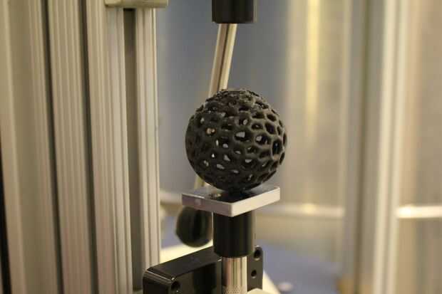 Estos resultados llevan a la conclusión de que la carga máxima depende de la dirección de admisión. Basado en estas pruebas, la resistencia de la cáscara sólida parece ser 2,5 veces más grande que la forma de Voronoi con carga perpendicular a las capas y 3 veces mayor para cargas paralelas.