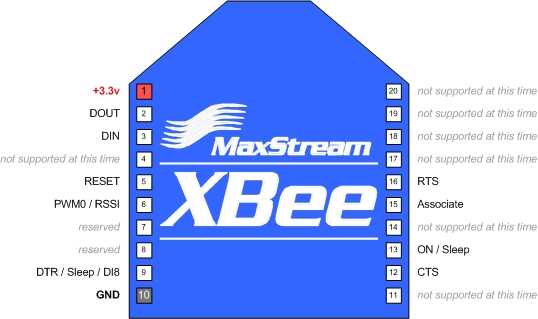 Sólo necesitaba 1 conexión serial para el XBEE (enviar los datos al receptor). Conecte el XBEE a 3.3V, tierra y Pin Digital 1 (UART 1 TX). Pin digital 0 es RX, si le gustaría recibir datos. Usted puede encontrar el pinout para el XBEE