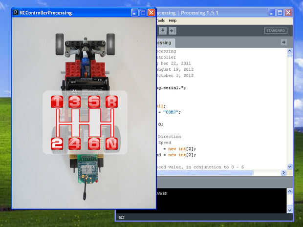 Usted puede utilizar el mismo código que se utiliza con LEGO R/C coche Redux y puede ser descargado en el paso 11: Arduino Sketch e interfaz de usuario de procesamiento.