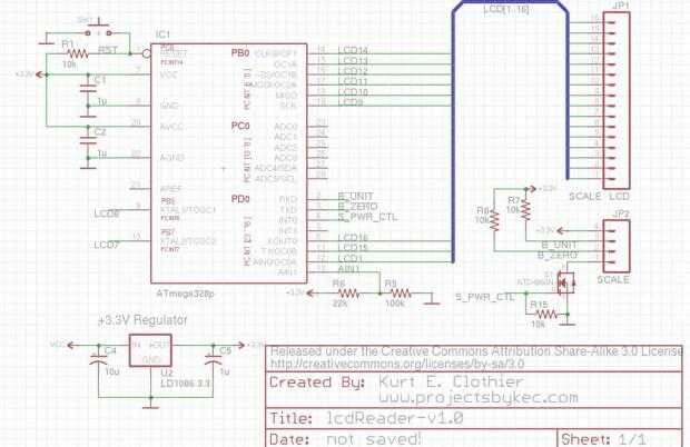 La última cosa que quiero señalar son las conexiones a JP2 - realmente planeo tomar el control completo de la escala digital. Mi circuito será capaz de desactivar la función a la escala y los botones de modo. He optado por dejar de PORTC abierto. Esto libera los pasadores de I2C para comunicación con otros chips, así como un puñado de entradas analógicas que podrían ser utilizadas más adelante. Su aplicación probablemente variará.