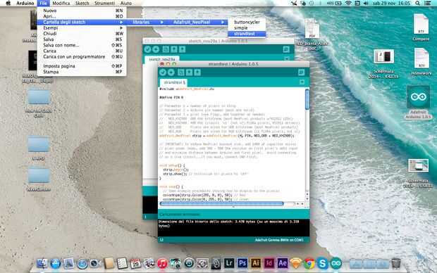 -seguir este camino para abrir el código para probar los leds: bosquejo carpeta > bibliotecas > Adafruit_Neopixel > Strandtest;