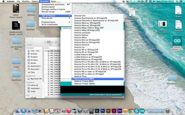 -poner el tipo de arduino: Adafruit Gemma 8MHZ;
