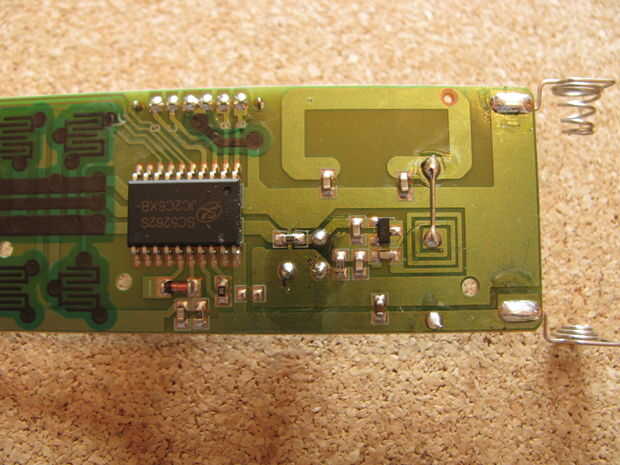 El cable de datos debe ser conectado al pin de duda de la viruta (ver fotos). Hay una resistencia que tiene un lado conectado directamente a la duda del perno (ver fotos). Me pareció mucho más fácil soldar mi cable de comunicaciones con esto que a la viruta sí mismo. No importa que el perno en el arduino entra siempre que cambie el código en consecuencia. Yo pin 10 y como tal es lo que tendrá el código por defecto.