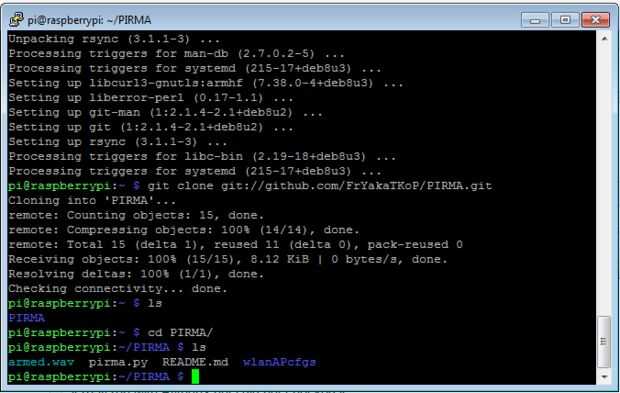 Asegúrese de que usted está en /home/pi/directorio luego clonar mi repositorio a él.