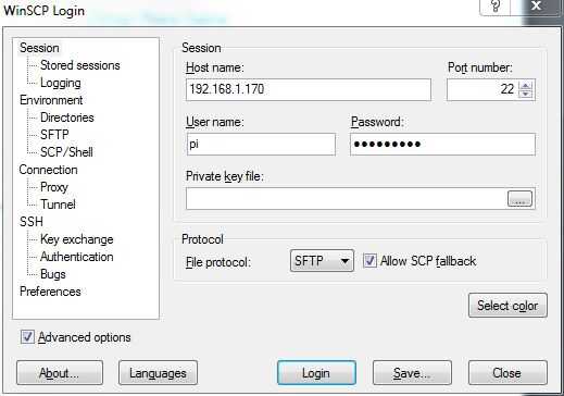 Esencialmente, también conocido como File Transfer Protocol, FTP es un protocolo de red estándar para transferir archivos desde un ordenador/servidor a otro a través de una red. En este caso, es tu LAN (red de área Local). Vamos a tener que averiguar la dirección IP de su Pi. Entonces nos podemos conectamos con WinSCP.