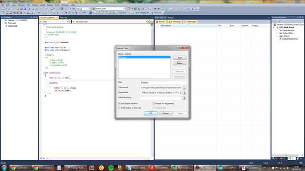 Una de las mejores características de Atmel Studio es el soporte para herramientas externas, como el AVRDUDE sí mismo. Básicamente, Atmel Studio deja esta lo suficientemente abierto a la personalización, que con sólo pulsar un botón, puedes realizar una llamada de programa de línea de comando completa y desplegar tu firmware en el microcontrolador de destino.