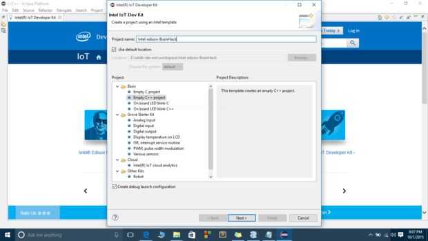 para obtener un cuadro de diálogo donde tecleamos el nombre del proyecto, en mi caso llamaron "intel-Edison-brainhack"