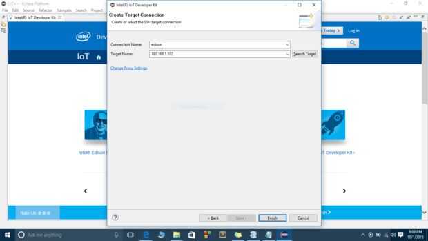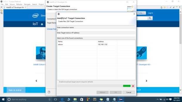Aquí usted tiene que especificar la dirección ip de su Edison (que es en la misma red wifi)