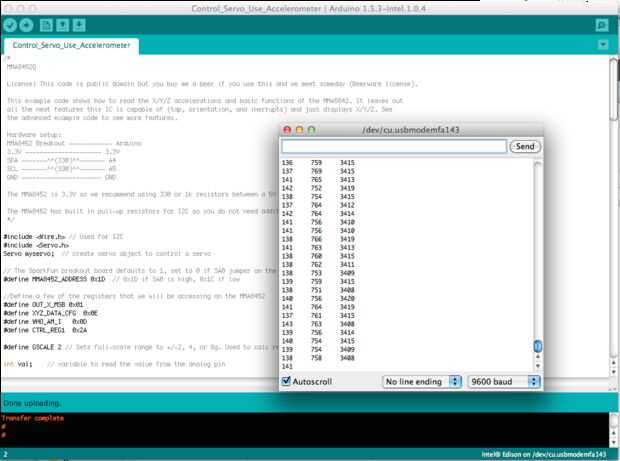 Finalmente, todo es verdad, ahora puede compilar el código y disfrutar el resultado. Es realmente muy divertido cuando ves que el servo gire siga al movimiento acelerómetro.