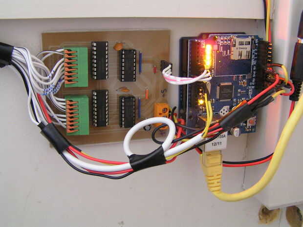 En este punto, si usted decide usar uno, instale el sensor de luz. Esto deja las luces de escalera de trabajar cuando hay suficiente luz ambiente para ver donde se va de todos modos. Utilicé la versión de 3 pines de freetronics - tiene 3 conexiones, + 5, Gnd y señal al pin analógico 0. Ponerlo en un lugar que reciba luz de iluminación exterior e interior.