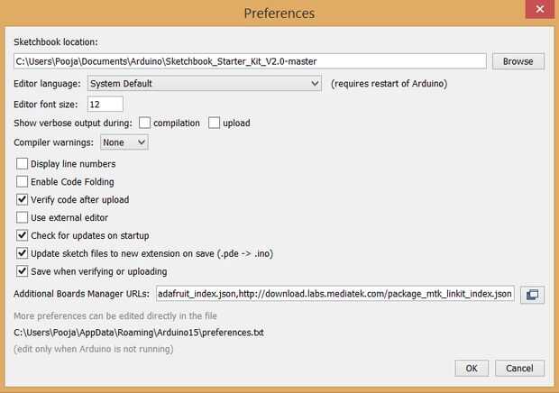 1. Abra el IDE de Arduino (versión 1.6.4 o superior), menú Archivo bajo seleccione Preferencias.