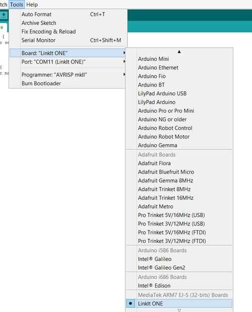 8. ahora se dará cuenta de la Junta de LinkItOne listados debajo de la herramienta, en el menú tabla.