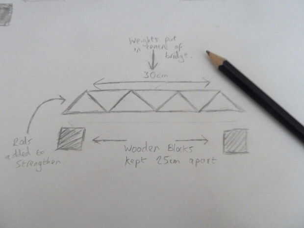 Una vez pensando en estas ideas, es finalmente tiempo para comenzar a diseñar tus puentes! Encima son 2 diseños de 2 que hice. Se trata de cómo debe tratar de presentar sus ideas como sean fáciles de desarrollar. Estos diseños son rugosas y por lo tanto no es necesaria una regla. Asegúrese de utilizar un lápiz en caso de que desee borrar cualquier cosa :-)