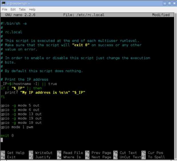 Igual que antes si usted decide utilizar los GPIOs adicionales, debe cambiar el script /etc/rc.local:
