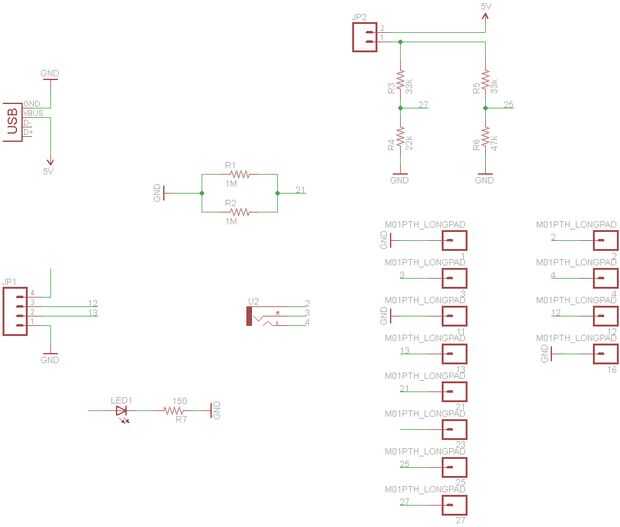 Se conectará a masa a través de una 500k resistencia de Ohm PIN 21 del conector de iPod, o en mi caso usé dos resistencias de 1M Ohm en paralelo. Conector de pines 25 y 27 control de cómo las acusaciones del iPod. Si ponemos 2, 8V en el pin 25 y 2. 0V en el pin 27 podemos conseguir el iPod para dibujar sobre 1A y cargar la batería. El se lleva a cabo por división de voltaje simple como puede verse en el segundo esquema.