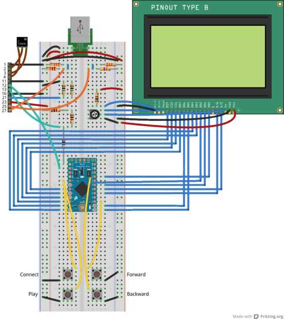 Se detallan las conexiones que deben hacerse al lado de cada pin en el sitio web anterior. Además, los sitios web que he enumerado anteriormente en este Instructable hablan de ellos demasiado. También voy a tocar en él. El dibujo de Fritzing debe ayudar a aclarar cualquier confusión con los esquemas en formato EagleCAD demostrados.