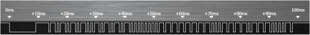 Cuando la señal es "baja", se transmite una ráfaga de IR de pulsos a 38 kHz. Por el contrario, cuando la señal es "alta" representa un periodo de silencio.