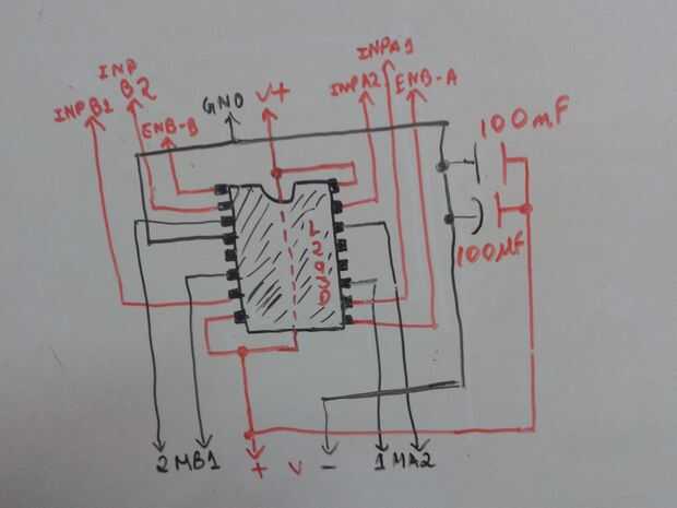 - Como en el esquema de L293D conectar los cuatro terminales del motor DC al conductor Nota : - MA - Motor A.... MB - Motor B, el resultado final de la salida dependerá totalmente de cómo usted conectarse el Motor el conductor.