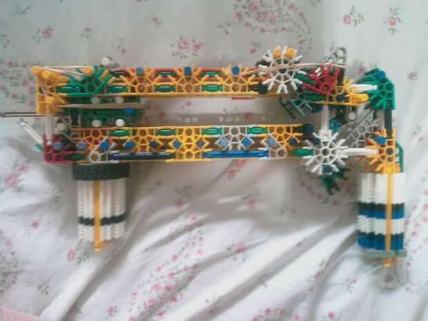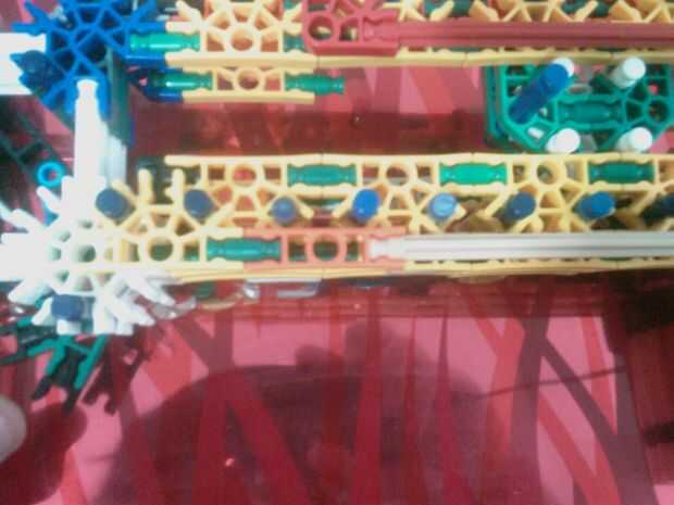 Así que un poco tiempo atrás, vi un video de este chico que hizo una 'pistola' madera que propulsó un perno hacia adelante para disparar Jenga bloques de una torre de Jenga sin tener que preocuparse tirando de ellos. Pensé que era cool, así que miré a ver si alguno ha sido ible tenía en este sitio y resulta que ahí es nada. Tuve unos trozos (esto es todo de ellos) queda de construir otro que estoy trabajando, así que decidí darle un crack. Mi versión es creado a partir de K'nex (mi primera entrada para el concurso de juguete) y es también el primero de dos que va a hacer. Esto era más un prototipo que me ayudó a captar la idea de cómo debería funcionar, pero utiliza un fresco sistema de cocción, sin embargo, y serán por lo tanto puse algunas fotos de ella. Sin embargo, es voluminosa y no muy liso, por lo que no publicaremos totalmente esta versión. Además, yo sólo quería añadir que sí, sé que esto podría ser un arma ram estúpido con la parte delantera corta y sería mucho más simple, más ligero, eficiente y limpio. Pero ese no era el propósito de hacer esto; Hice intencionalmente el perno un * tornillo * a imitar el original y yo. ¿No les gusta? Construir sin los conectores en la parte frontal y tienen un día agradable.