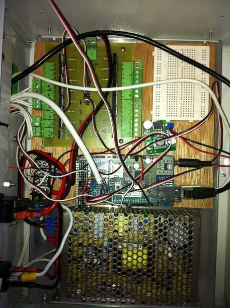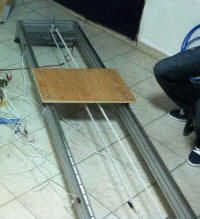 Hardware para el portero (carriles para avanzar, interruptores para reconocer los bordes y el centro, fuente de alimentación)