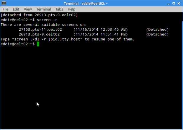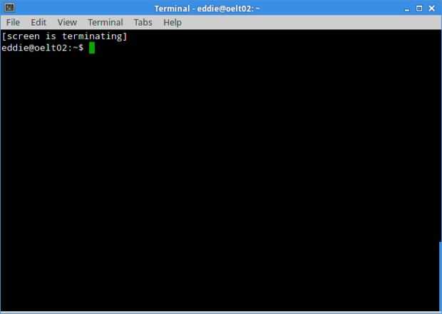 Cuando termines con tu trabajo, te recomiendo que dejar la sesión en lugar de guardarlo para más tarde. Para detener la pantalla usualmente solo puede escribir salida de la shell. Esto cerrará la ventana de la pantalla. Tienes que cerrar todas las ventanas de pantalla para terminar la sesión.
