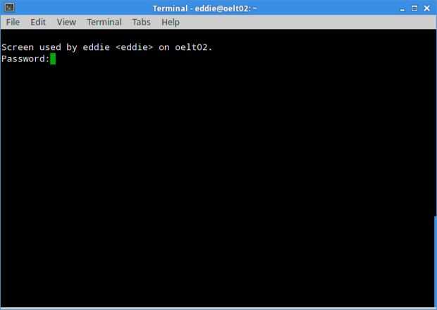 Si usted necesita dar un paso lejos de su computadora durante un minuto, puede bloquear tu sesión de pantalla con "Ctrl-a" "x". Esto requerirá una contraseña para acceder a la sesión de nuevo.