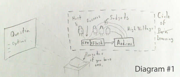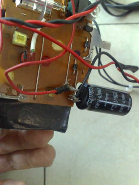 Como se puede ver, hay tres salidas, una para cada jugador; cada salida controla el dispositivo de retroalimentación de los jugadores. Cada salida solo cierra el circuito de alto voltaje del condensador cámaras desechables. La resistencia es útil si usted tiene niveles diferentes de cobardes (disminución a la resistencia, si sientes que tus temas están volviendo insensibles a la chispa y aumentan la resistencia si los reproductores empiezan llorando por su dignidad y su mamá).