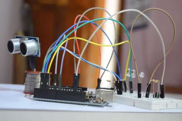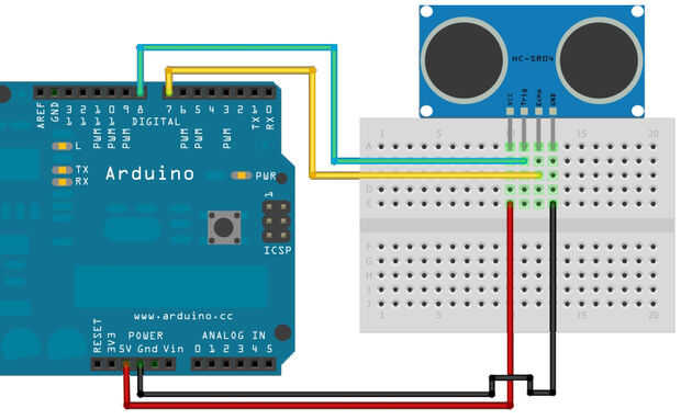 Arriba se muestra el diagrama del circuito para nuestro módulo de HC-SR04. También usé algunos LED para saber el estado y el interruptor para controlar la entrada.