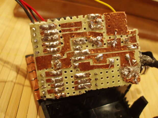 He tenido éxito construyendo la placa de circuito mediante la aplicación de cinta de cobre a un tablero en blanco y luego cortando rastros, pero si has hecho algo con el grabado de PCB, que es probablemente la mejor manera de ir.