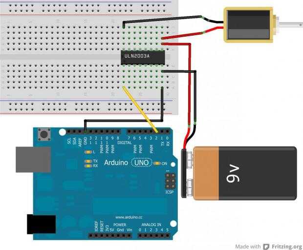 (nota que tuve que sustituir la válvula con un solenoide - pero bueno es una válvula de solenoide después de todo. Ah y por cierto - si no tienes una válvula neumática el circuito funcionará con solo un solenoide regular - a montarlo para que golpea un objeto de metal y debe producir el sonido también).