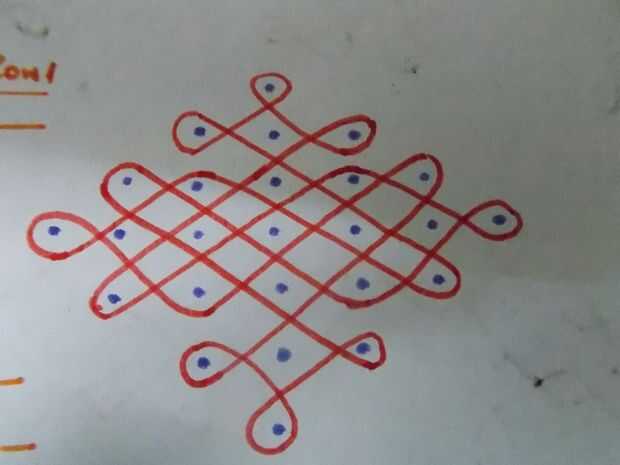 Kolam es un tipo de arte que hacen de la mayoría de las mujeres del sur de India en la rotura de día de jornada y al atardecer que representa el inicio y el final del día. Aprendí este arte de mi gran madre, mi madre y mis tías. Cuando alguna vez nos vamos al lugar de mi abuela, una es pueblo cerca de Madurai, Tamil Nadu, India, tienen la oportunidad de dibujar estos kolams hermoso y rangolis en la parte delantera y patio trasero de nuestra casa. Bien ¿cuál es la importancia de hacer esto? Mi abuela solía decirme que es cómo damos la bienvenida a los nuestros dioses especialmente diosa Lakshmi en nuestro hogar y es también gracias a Dios del sol para traernos un nuevo día en la mañana y decir gracias y adiós antes de la noche. donde como mi mamá dice hay una razón científica detrás de esta tradición. En general, temprano en la mañana cuando el nivel de contaminación es realmente menos y el aire es más limpio y también más altos en el contenido de ozono. Así que haciendo estas actividades beneficio indirecto la persona como uno recibiría limpio O2 y esta actividad también hace que nuestro cerebro más activo y alerta al igual que hacer un estiramiento antes del ejercicio real, estimularía nuestra concentración. Lo que uno asume que, como arte, realmente disfruto hacer con mi familia.
