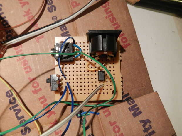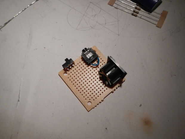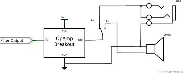 El interruptor SPDT se utiliza para cambiar entre la salida de audio a la toma o el altavoz. El pin del centro es donde se conecta la señal del amplificador. El eje derecho va a la toma de audio y la izquierda para el altavoz. El terreno de la toma de audio, el pin del centro, está conectado a una de las patillas del altavoz, y ambos están conectados a tierra.