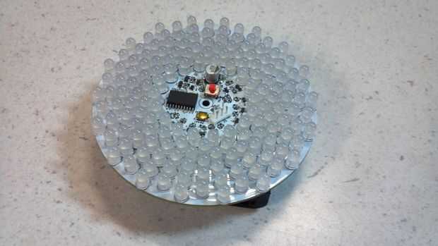 La ChromoDisk es muy similar al LED Aurora. Tiene el mismo 9 anillos de 18 LEDs y cada anillo tiene que ser el mismo color y brillo por el método de multiplexación. Este dispositivo usa modulación por ancho de pulso (PWM) en lugar de resistencias para limitar la potencia de los LEDs, por lo que aunque lleva menos tiempo de ensamblaje y componentes, tienes que ser un poco cuidadosos con como se escribe el software. Esta es una buena ilustración de la compensación que tiene que hacer al diseñar con los microcontroladores. Es necesario lograr un equilibrio entre lo que haces en el hardware y qué hacer en software. NO estoy diciendo que enfoque LED artista con todas las resistencias es mala, es sólo una opción de diseño y esta es una alternativa. Más sobre esto más adelante.
