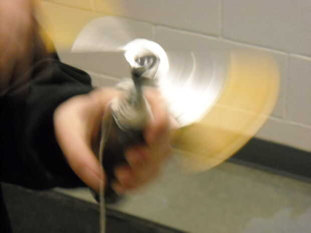 El proyecto se hace simple de tubos de acero con un perno largo pasando por el medio, un par de rodamientos de skate desechados y frutos secos. Una cadena de la herida alrededor del perno lo gira como se tira. El movimiento de giro se transfiere a un propulsor y WHOOSH de él va. Incluso hace que el sonido! en serio!