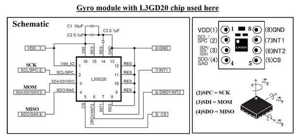 (* 1) Aquí usé portador de Akizuki. Sé que otra compañía de L3GD20 producido por chip. Este último está disponible también fuera de Japón. Si se utiliza en lugar de la anterior, debe considerarse el cuadro con el esquema anterior.
