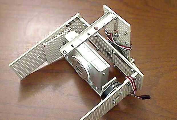 En el primero, algunos acero barra plana con agujeros regulares se busca, que es conveniente para el centro de gravedad de la cámara y a los agujeros existentes en el marco. Por otro lado esta última obra deba estar equipado con una cámara más grande que la GoPro.