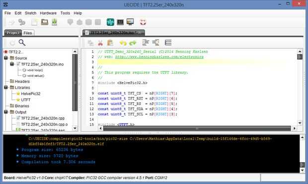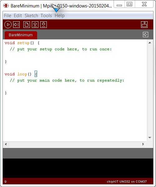 Si conoces el IDE de Arduino, fácilmente puede utilizar MPIDE a los HelvePic32 del programa. Viene con el cargador de arranque por el ChipKit DP32 cargado y un bosquejo de la carga es fácil: