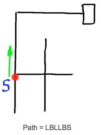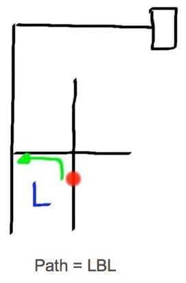 El robot tiene que tomar estas decisiones cuando en una intersección. Una intersección es cualquier punto en el laberinto donde tienes la oportunidad de convertir. Si el robot es una oportunidad para activar y no se vuelve esto es considerar derecho. Cada paso tomado en una intersección o cuando de vuelta tiene que ser almacenado.