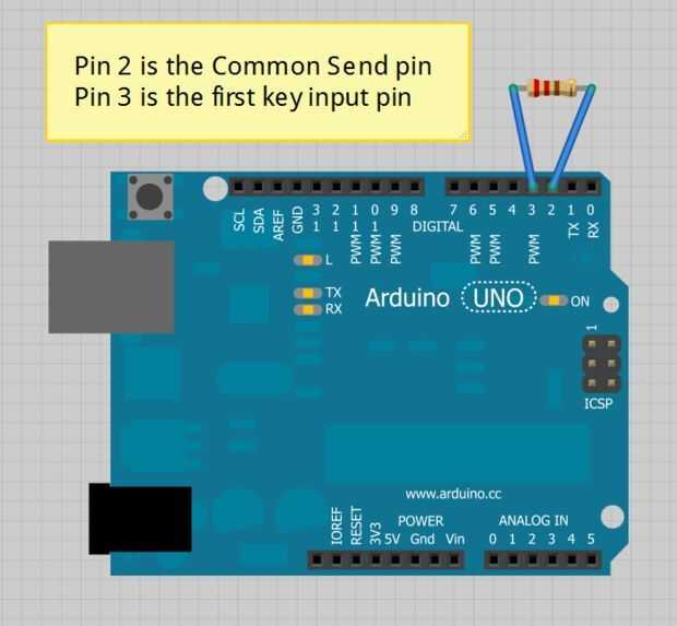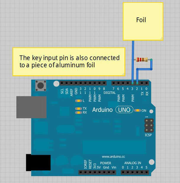 En primer lugar, vamos a trabajar en los sensores capacitivos. Abajo se encuentra el tutorial de arduino capsense original que da la mejor introducción en cómo los sensores capacitivos entender y construir, incluye la biblioteca necesaria capsense y código de ejemplo para jugar con. También incluyo un diagrama que encontré útil en otro instructable ( para ayudarle a entender cómo realmente simple el esquema es, mantener en mente los pines que se muestra son solo una sugerencia.